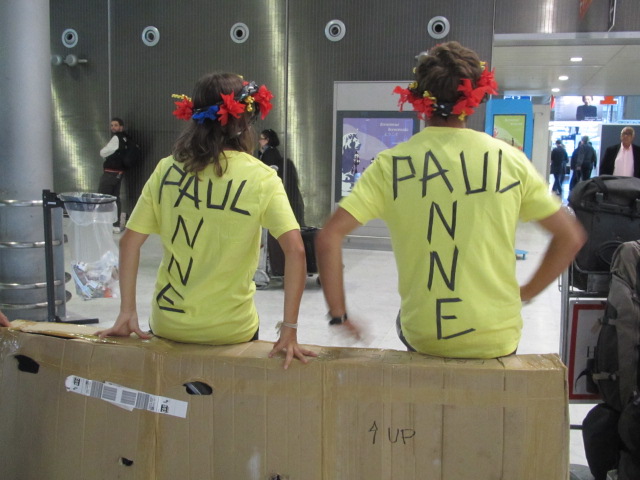 Un long voyage de 12 heures ou nous avons la chance d’être près de la fenêtre et de bénéficier d’un temps superbe. Nous survolons l’Himalaya, le Pakistan … Des paysages magnifiques. Prochaine destination à vélo après un détour par la Polynésie française pour rencontrer notre fan club ?